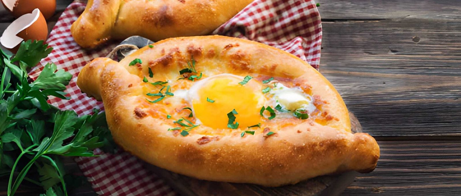 • Adjaruli Khachapuri: Originating from Adjara, this version is shaped like a boat and filled with melted cheese, butter, and a soft egg yolk on top.